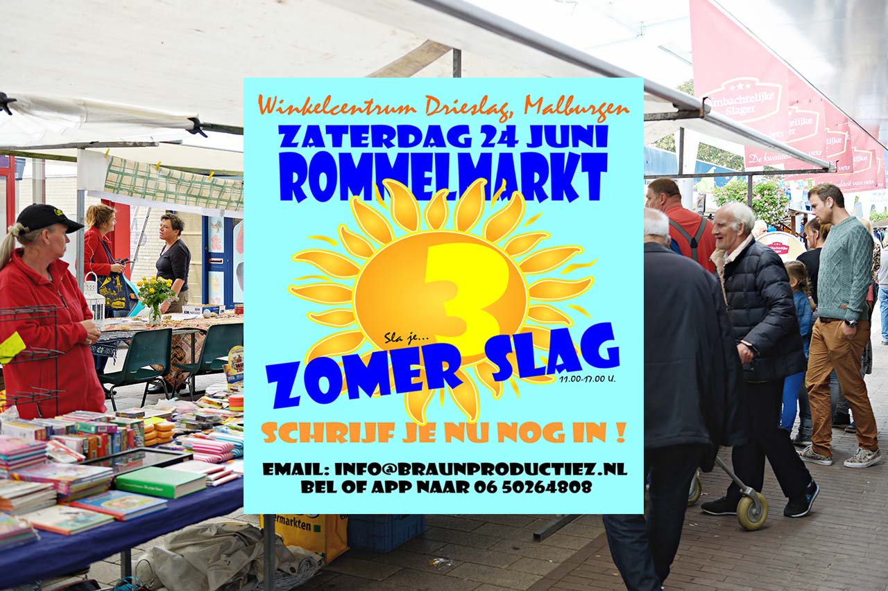 Op winkelcentrum Drieslag wordt zaterdag 24 juni een grote rommelmarkt georganiseerd. Tussen 11:00 – 17:00 uur zal de Drieslag gevuld zijn met tal van gezellige kraampjes. Ondernemers op het winkelcentrum doen mee met allerlei leuke aansluitende acties. De rommelmarkt loopt helemaal door tot in Malburgstaete en dat heeft een mooie reden.