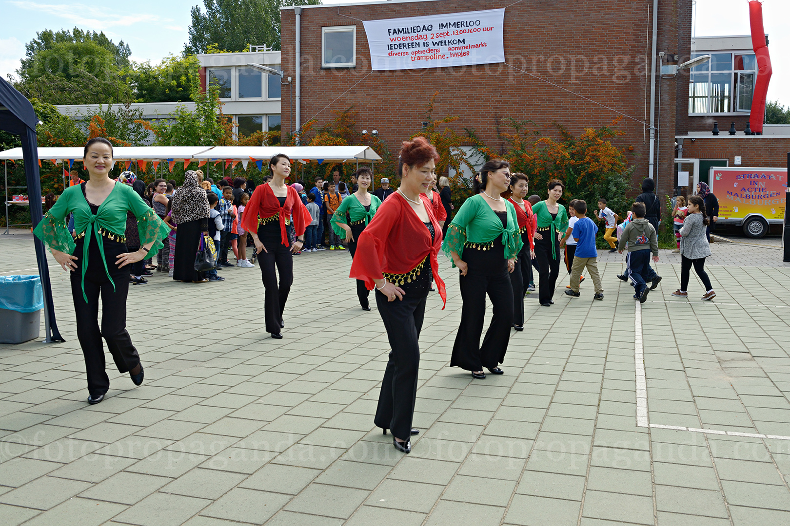 De feestmiddag die op het plein samen met Sportbedrijf Arnhem, de Johannes en Mozaïekschool was een breed programma georganiseerd van kinderspelletjes zoals stoelendans tot een snelle draaimolen, van Linedancing tot Chinese traditionele dans. De traditionele gratis popcorn en suikerspin zorgde ook dit jaar weer voor lange rijen kinderen.