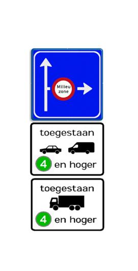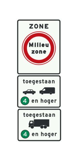 De emissieklasse staat ook op het verkeersbord bij een milieuzone. In Arnhem ziet u vanaf 29 oktober milieuzone-verkeersborden met nieuwe onderborden. Arnhem krijgt een ‘groene’ milieuzone. Op de onderborden staat een groen bolletje met het getal 4 erin. Met emissieklasse 4 of hoger mag u de milieuzone inrijden. Dieselauto’s met emissieklasse 3 of lager, mogen de milieuzone niet inrijden.