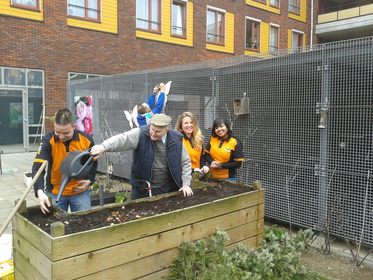 Zo gingen medewerkers van de Coöp supermarkt samen met medewerkers van Rijnstad vrijdag 20 maart aan de slag in het verzorgingstehuis Malburchtsteate. Er werd o.a. in de tuin gewerkt en tuinmeubilair geschilderd.
