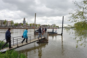 Ruim 50 belangstellenden waaronder vrijwilligers, sponsoren, afgevaardigden vanuit gemeente en pers waren aanwezig bij de feestelijke ingebruikname van het pontje tussen de Stadsblokken en het centrum van Arnhem.