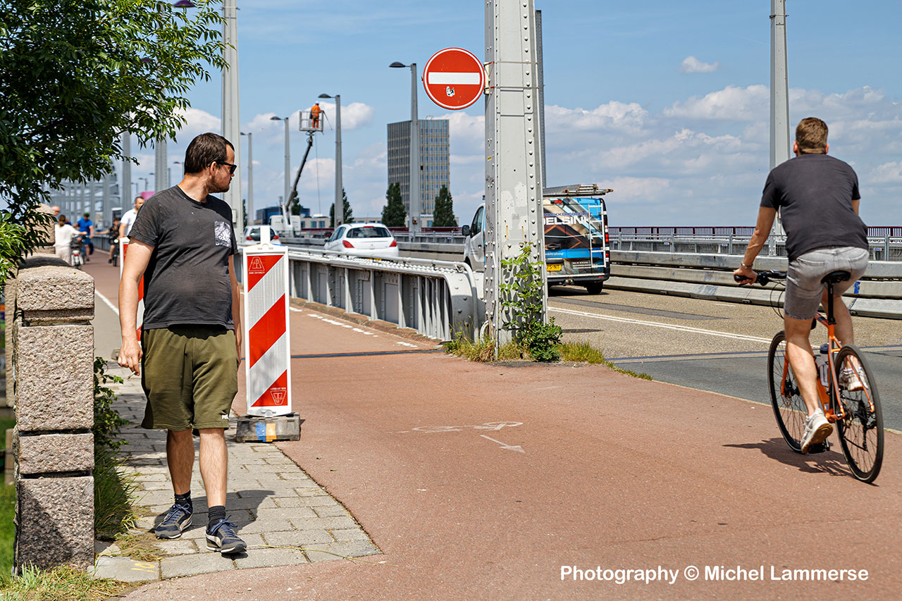 Een andere reactie die we binnenkregen was de vraag waarom bromscooters niet verplicht nu tijdelijk op de rijbaan tussen de auto’s laten rijden omdat hier nu de maximum snelheid 30 kilometer per uur is. De smalle fietsstrook zorgt daarnaast ook voor een ander probleem, dat is een flinke toename van spookrijders op het fiets en voetpad aan de westzijde van de brug.